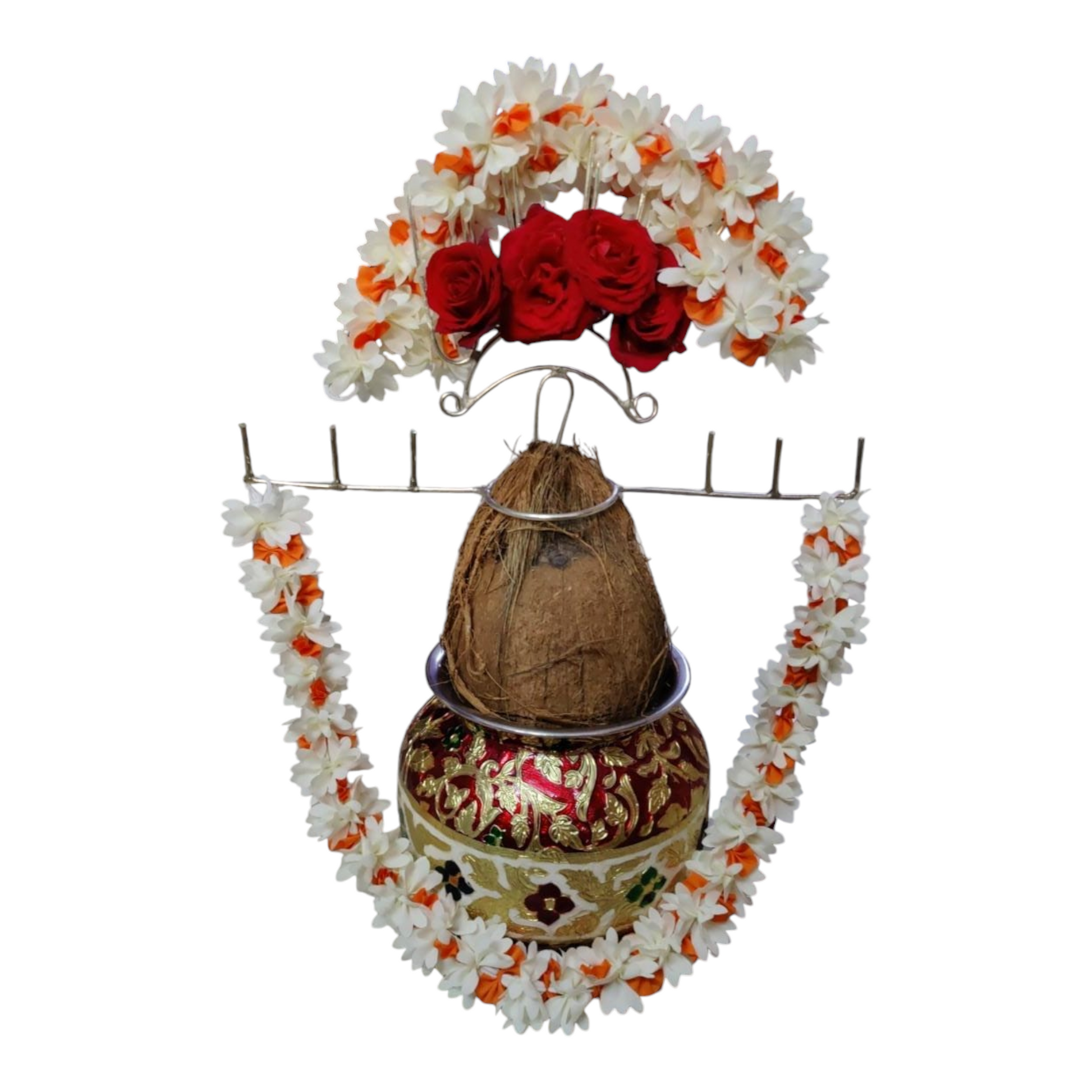 Enhance your varalakshmi pooja celebration with the Amman Face stand and Kalsam Stand. Perfect for displaying your amman face and kalsam, these stands add a touch of elegance and tradition to your pooja. Made with quality materials, they are a must-have for any pooja setup.
