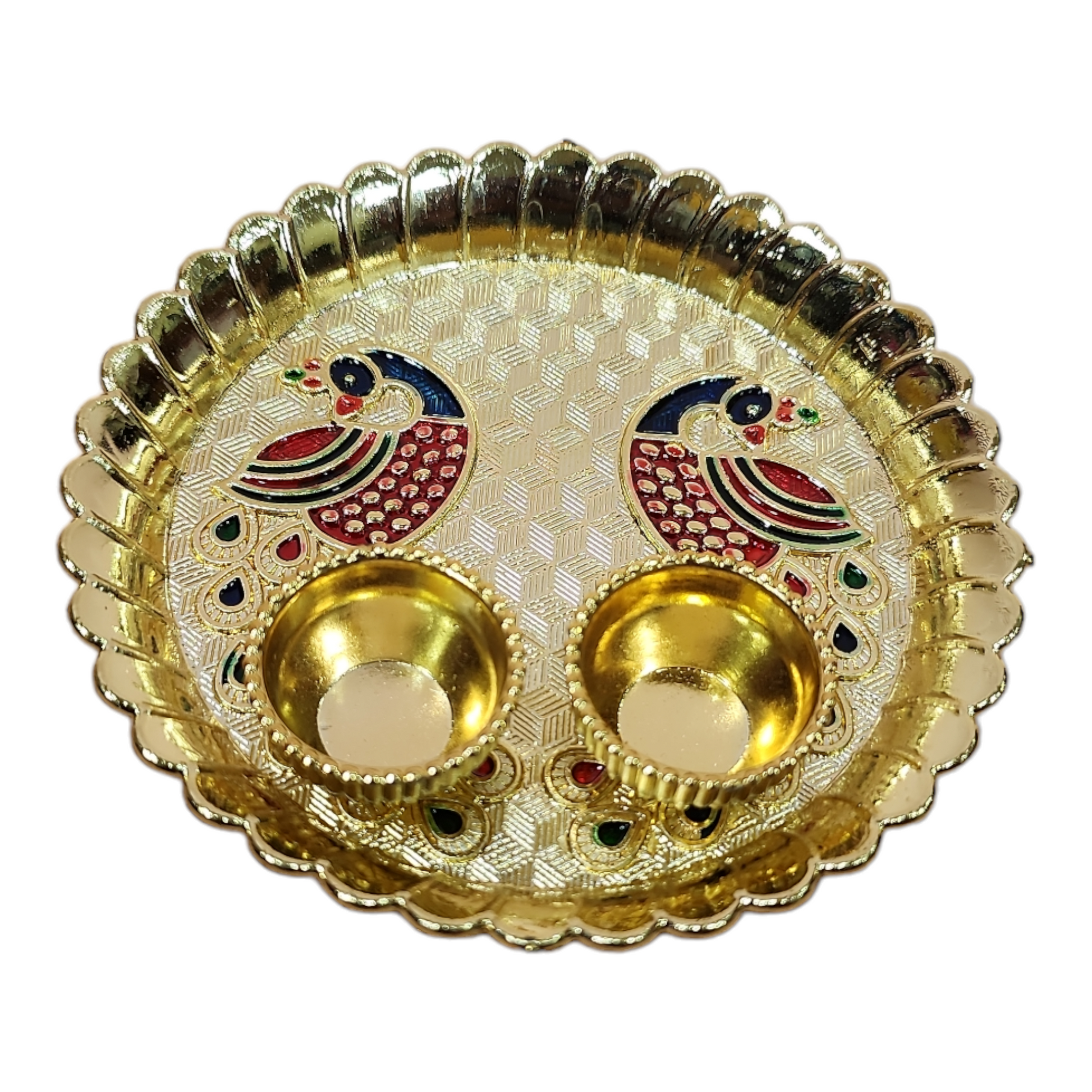 Acrylic Peacock with Meenakari work with Haldi Kumkum cups