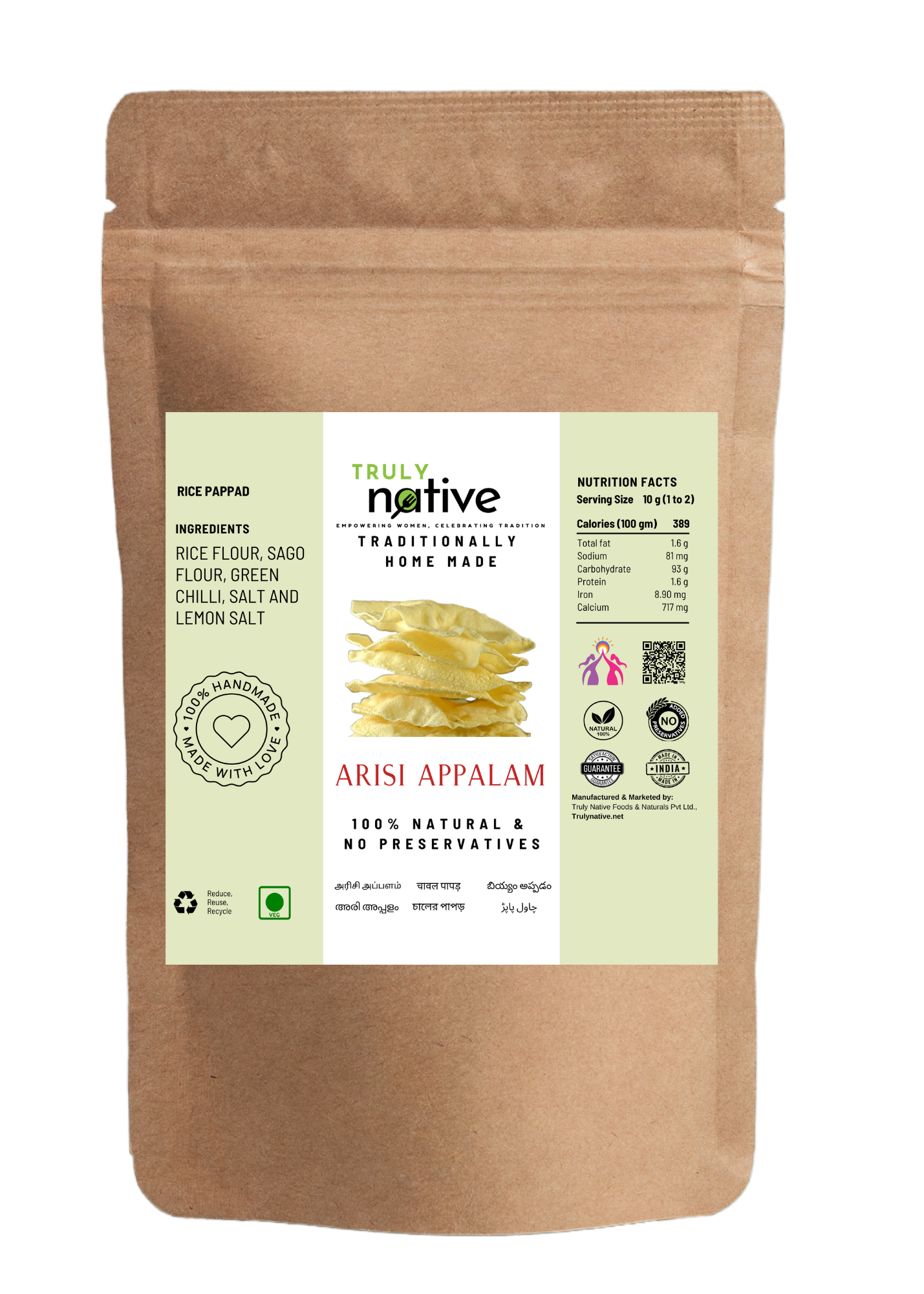 Made from premium rice flour, our Arisi Appalam is crisp and light, the perfect companion to any South Indian meal. Ideal for frying or roasting, it adds a delightful crunch to your platter.