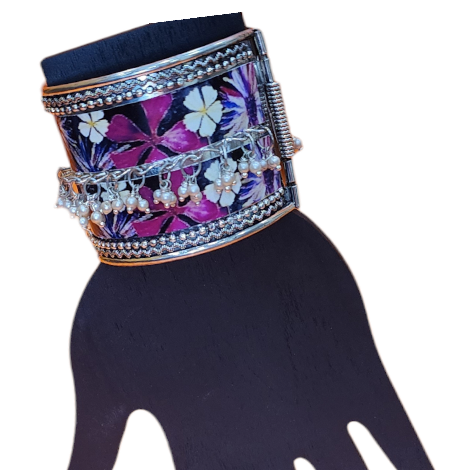 Add a touch of class to your look with this elegant bangles set. Featuring adjustable Fancy Style Oxidized Silver pearls, this party wear accessory will be the perfect finishing touch for any outfit.