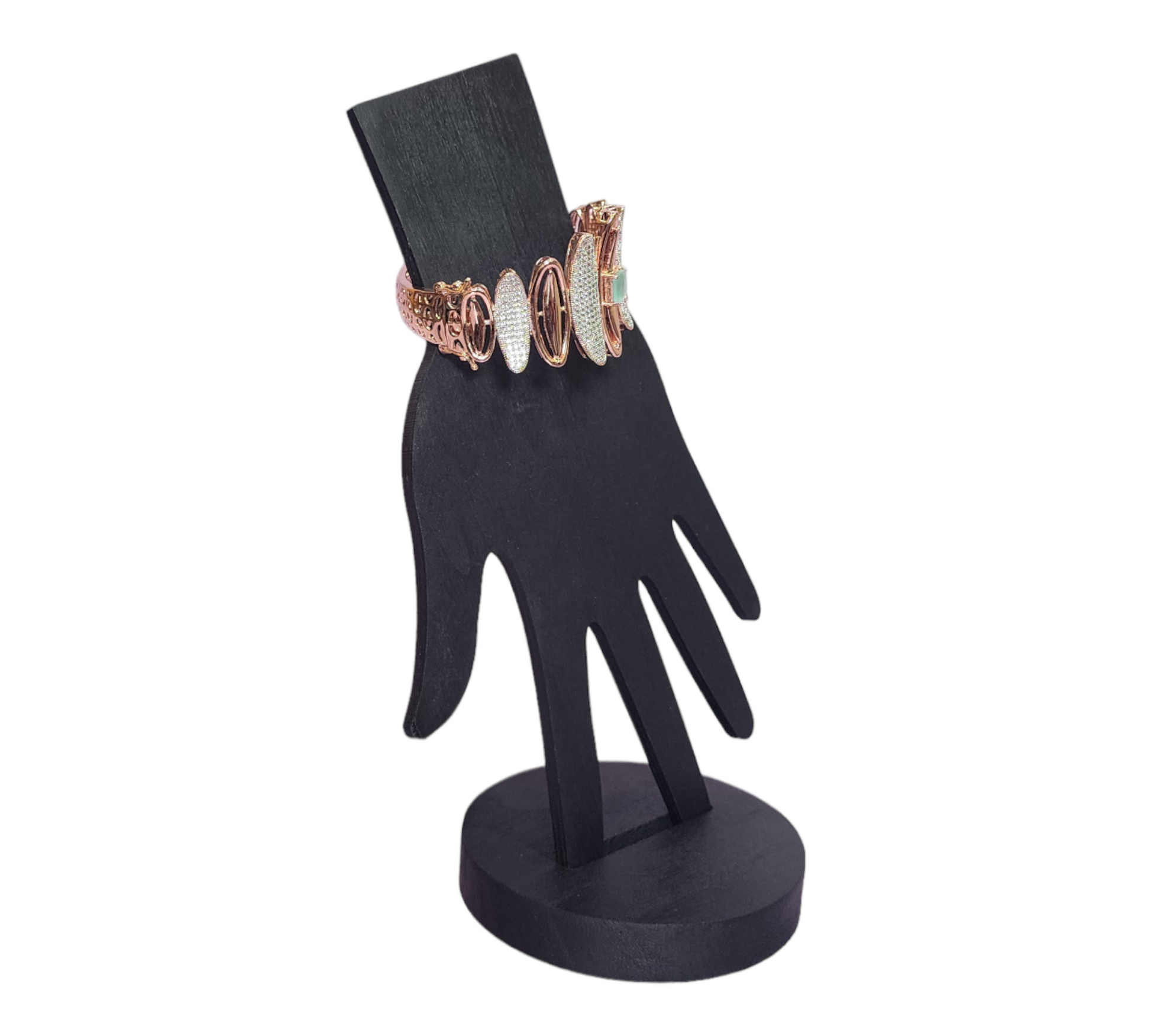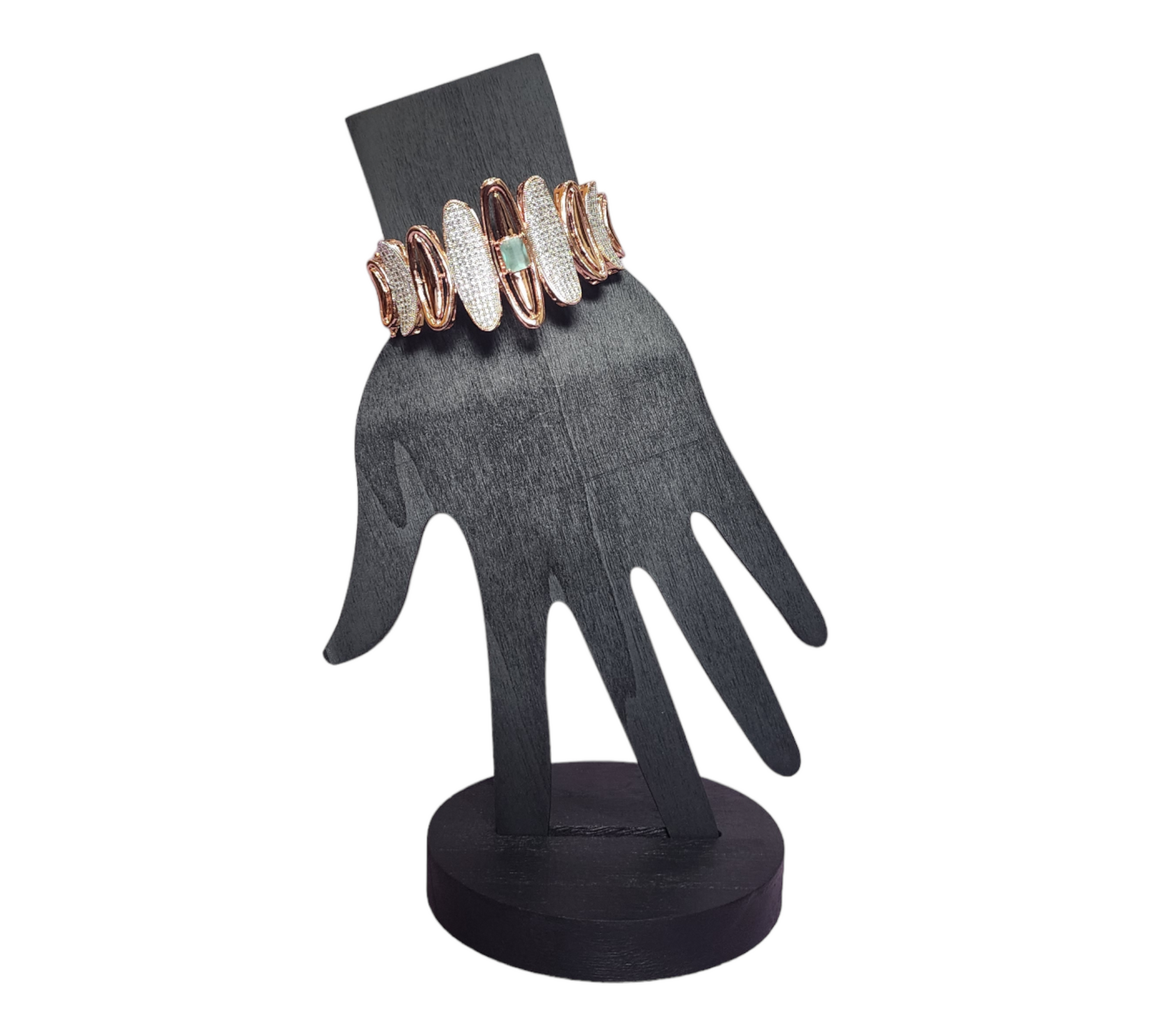 This stunning bracelet features a rose-finish rhodium polish and shimmering AD stones, all set in a fashionable style. Perfect for special occasions or simply to add a touch of glamour to an everyday look.