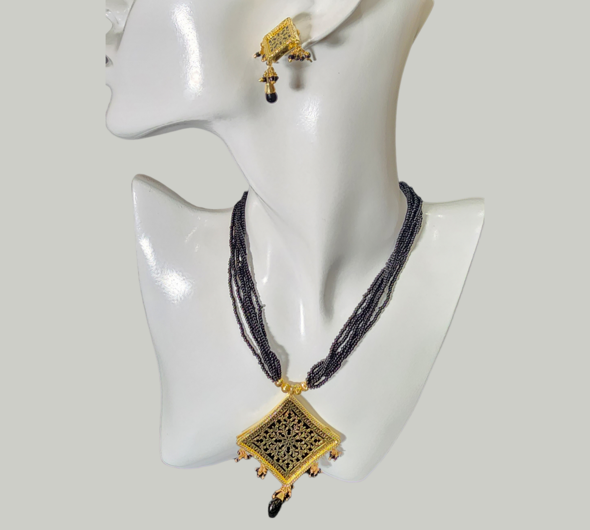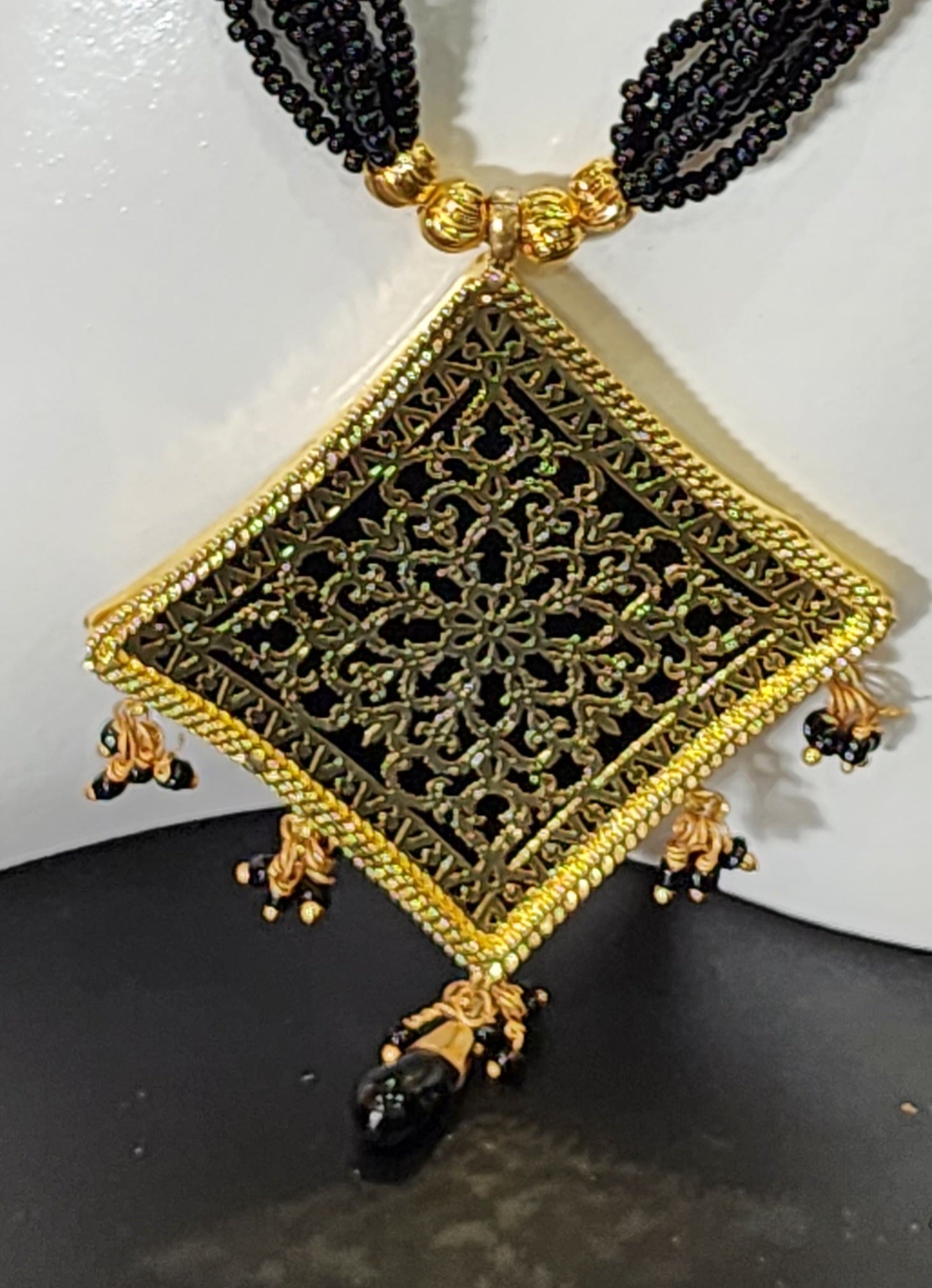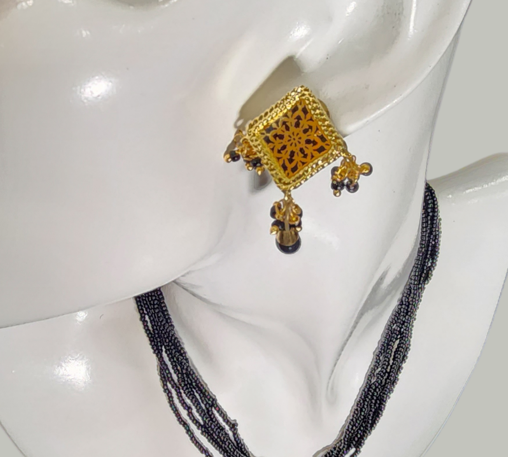 Chain Fancy Black Clustered Pearls gold color Pendant Party wear