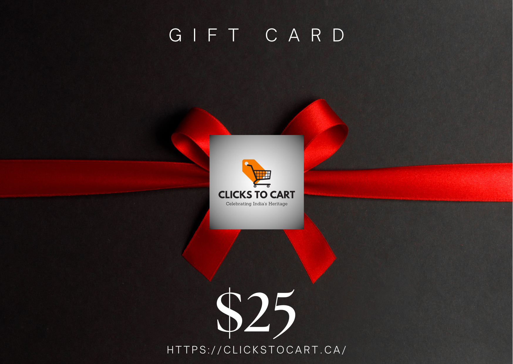 Give the gift of choice with Clicks to Cart gift cards! Perfect for any occasion, our gift cards let your loved ones explore a wide range of products, from fresh flowers and fruits to home decor, Gollu dolls, and all pooja essentials. Available in multiple denominations, it’s the ideal way to share joy and convenience. Gift cards are delivered instantly via email and can be redeemed easily on all purchases in our store. Whether it's for festivals, birthdays, or special celebrations, let them pick exactly what they want with a Clicks to Cart gift card!