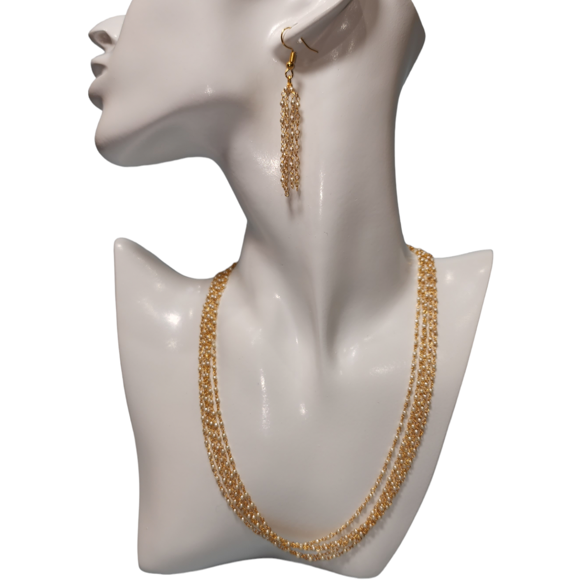High Gold Polish Cluster Pearl Long Chain Party Wear