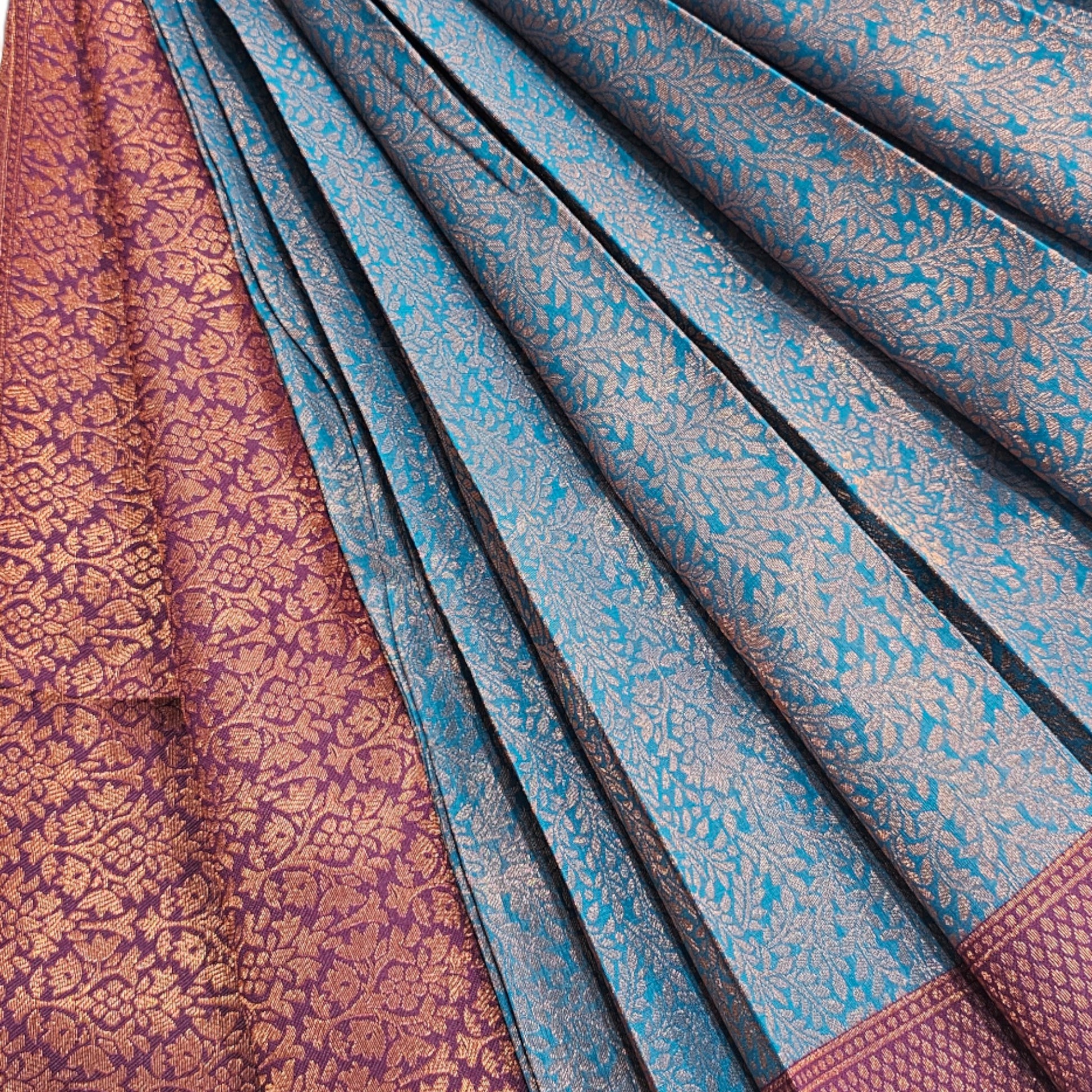 Embrace the celestial beauty of our Blue and Violet Soft Silk Saree. This enchanting combination of colors creates a mesmerizing effect, perfect for evening events and special occasions. The soft silk fabric drapes elegantly, enhancing your silhouette and providing utmost comfort. The intricate details and subtle shimmer add a touch of luxury to this already stunning piece