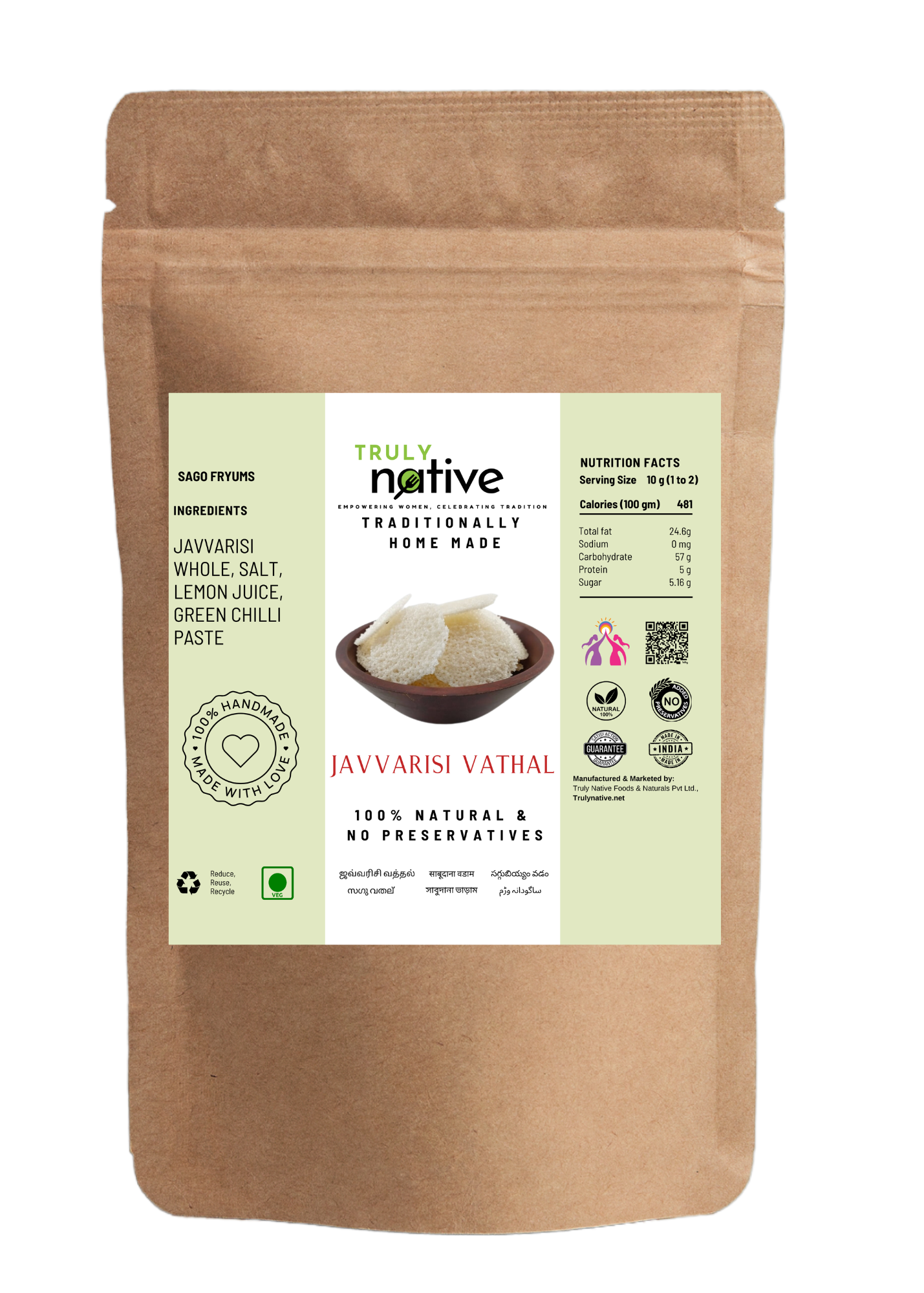 These sago fryums are sun-dried to perfection and puff up beautifully when fried, making them a hit with kids and adults alike.