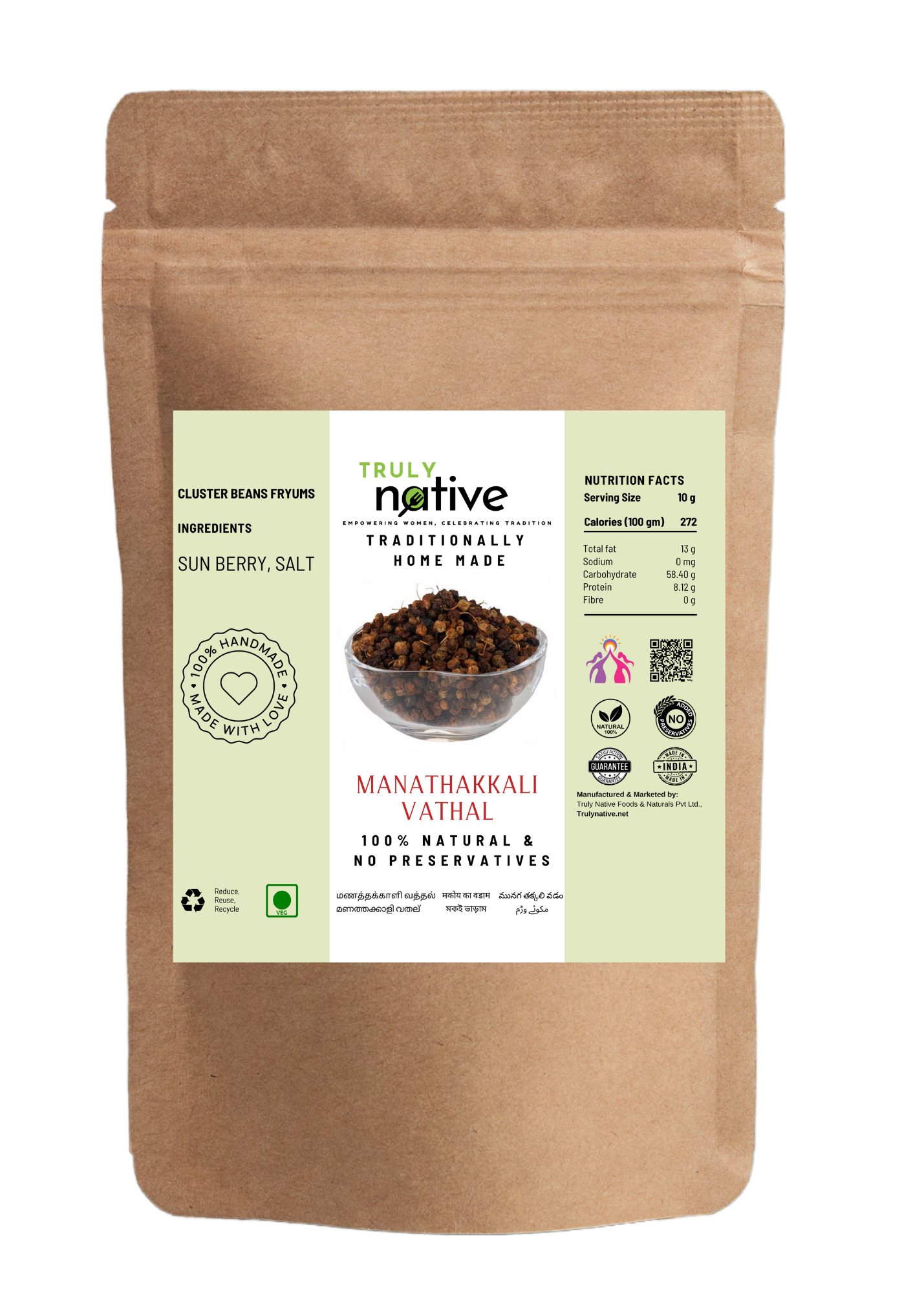 Rich in medicinal properties, Manathakkali Vathal is a healthy choice for enhancing traditional gravies like vathal kuzhambu.Â