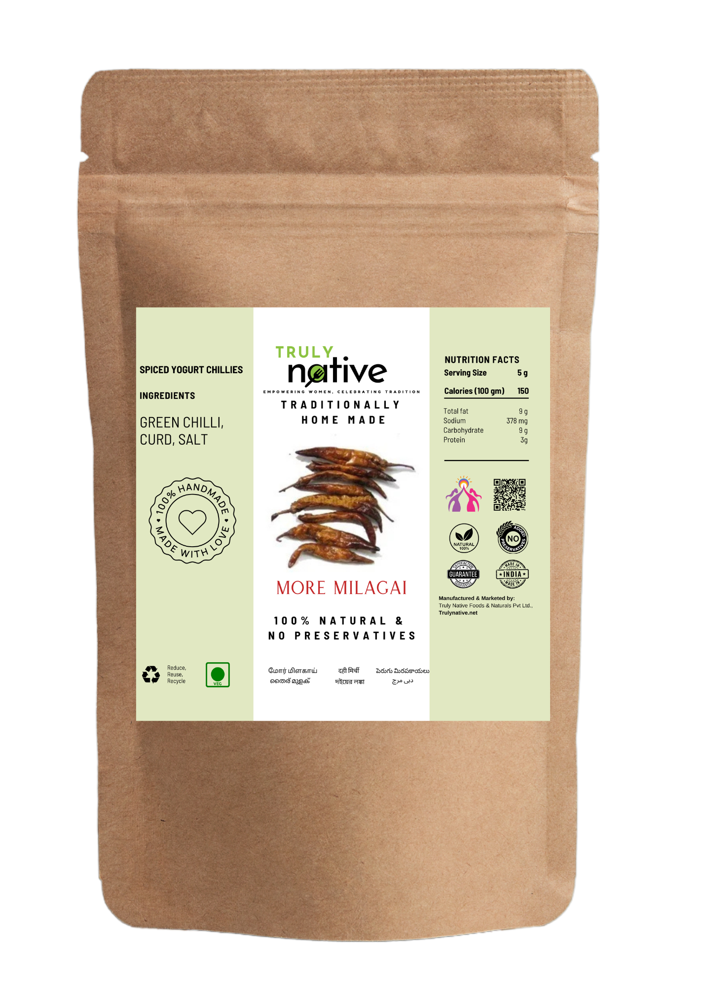 Spice up your meals with More Milagai, a traditional condiment made from sun-dried green chilies marinated in yogurt.Â