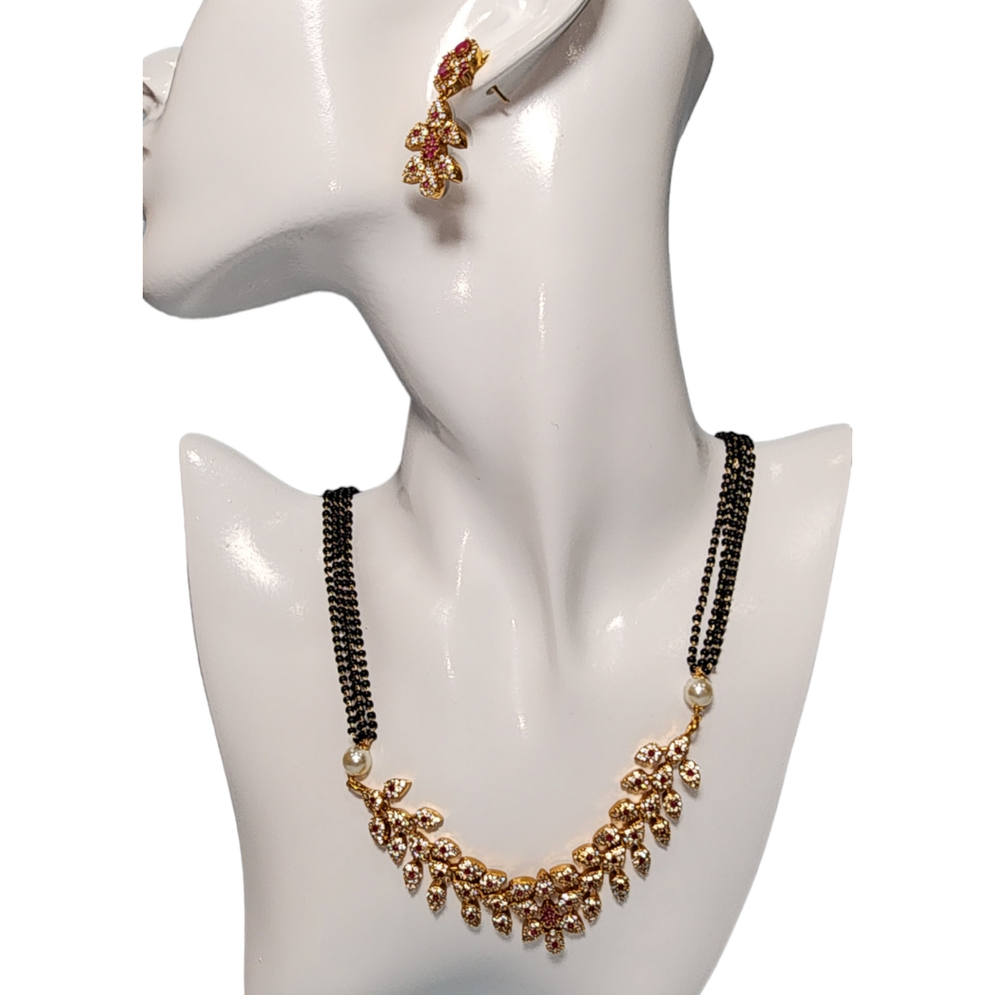 Necklaces Set Ruby White Beads Black Color Finish Party Wear