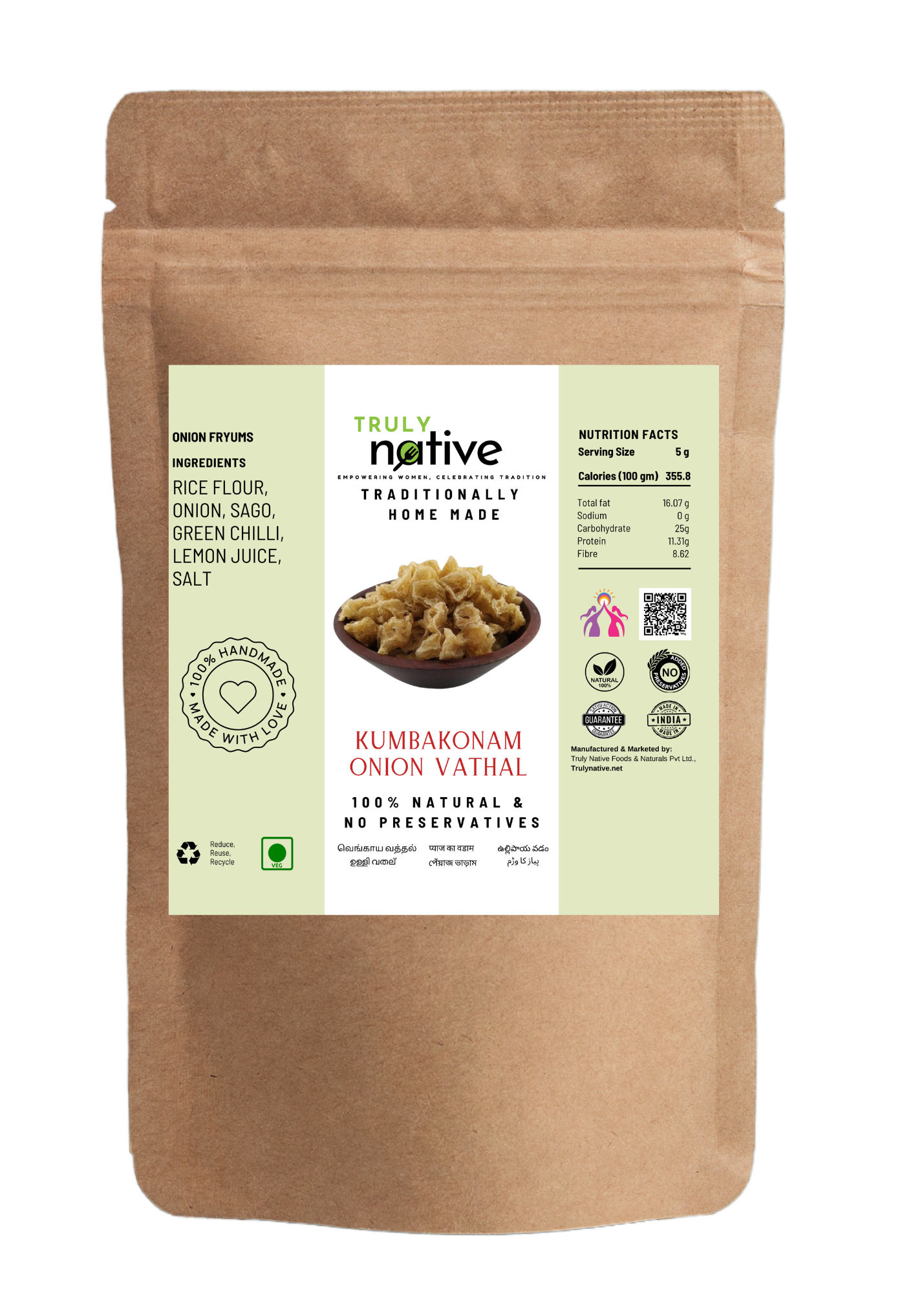 Our Kumbokonam special Onion Vathal is perfect for preparing quick and delicious onion-based gravies, adding an authentic touch to your recipes.Â