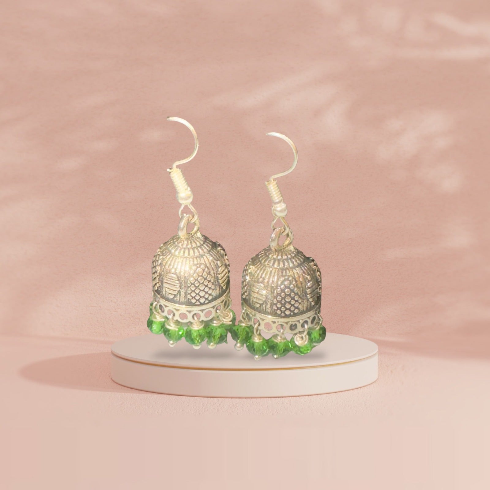 Oxidized Green Beads Hook Jhumka / Hanging Jhumka