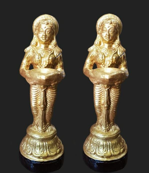 The Paavai vilakku Small 8 Inch is a traditional south Indian handcrafted lamp. The golu doll decoration gives the lamp an authentic aesthetic. Traditional lighting for festivals and special occasions.