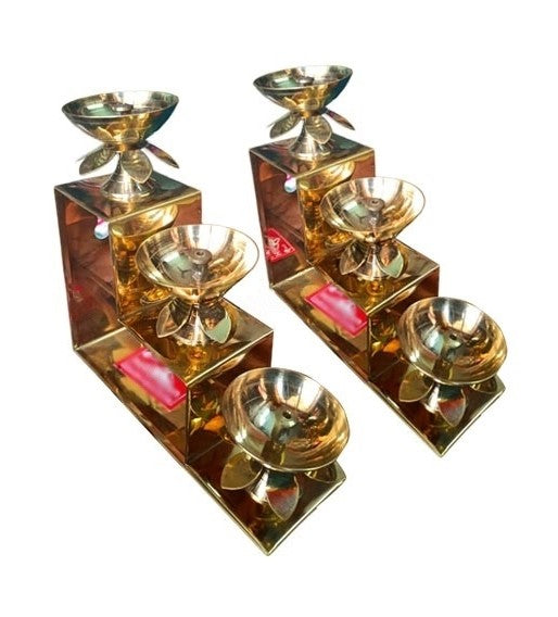 Pure Brass Diya 3 Step Oil Lamp 5.5"