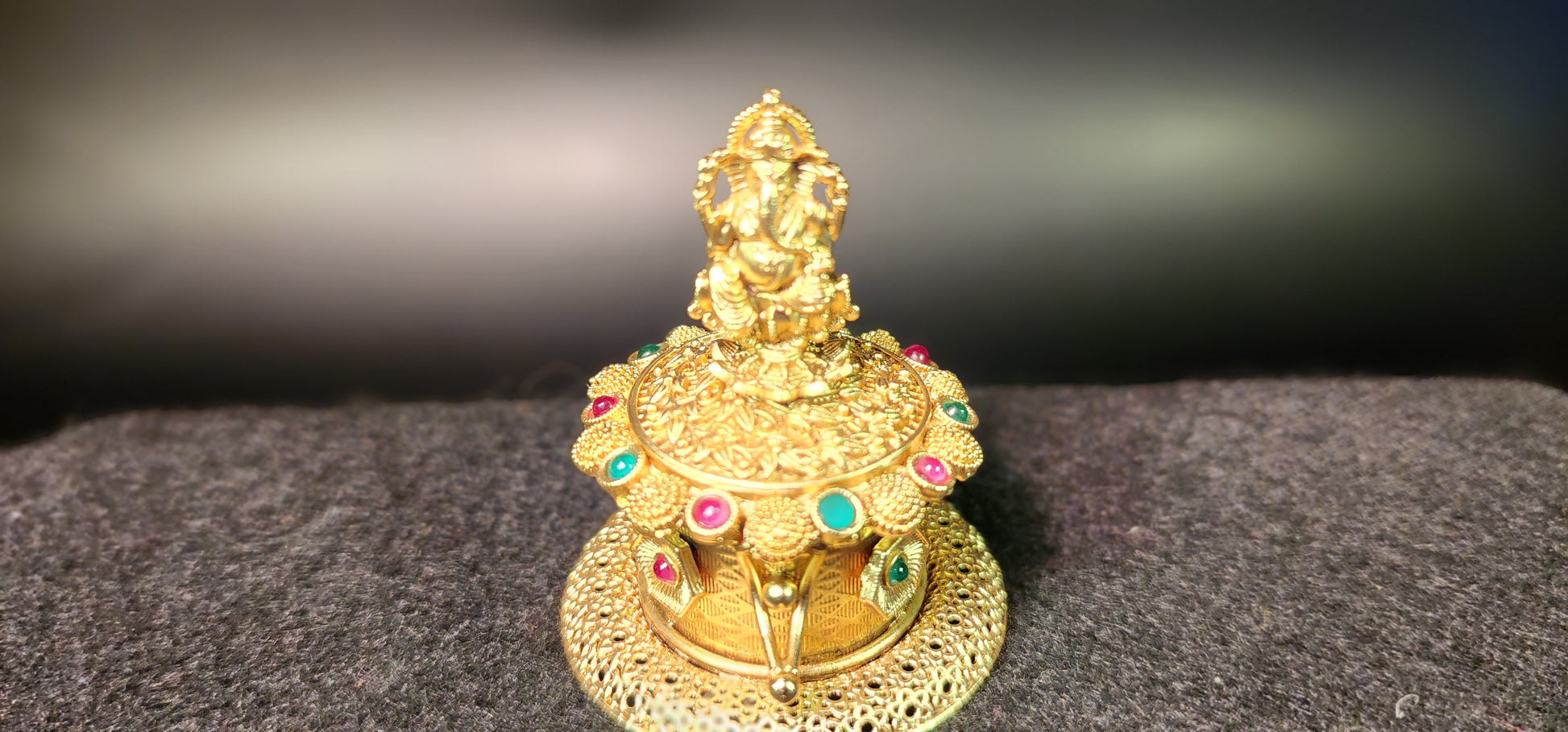 The Saffron Box Designer Style Ganapathy is an elegant, designer-style ganapathy statue that adds a touch of sophistication to interior décor. This highly detailed figure is crafted from premium quality, guaranteeing both an impressive look and robust durability. Perfect for any setting, this Ganapathy statue is an ideal choice for completing your décor.