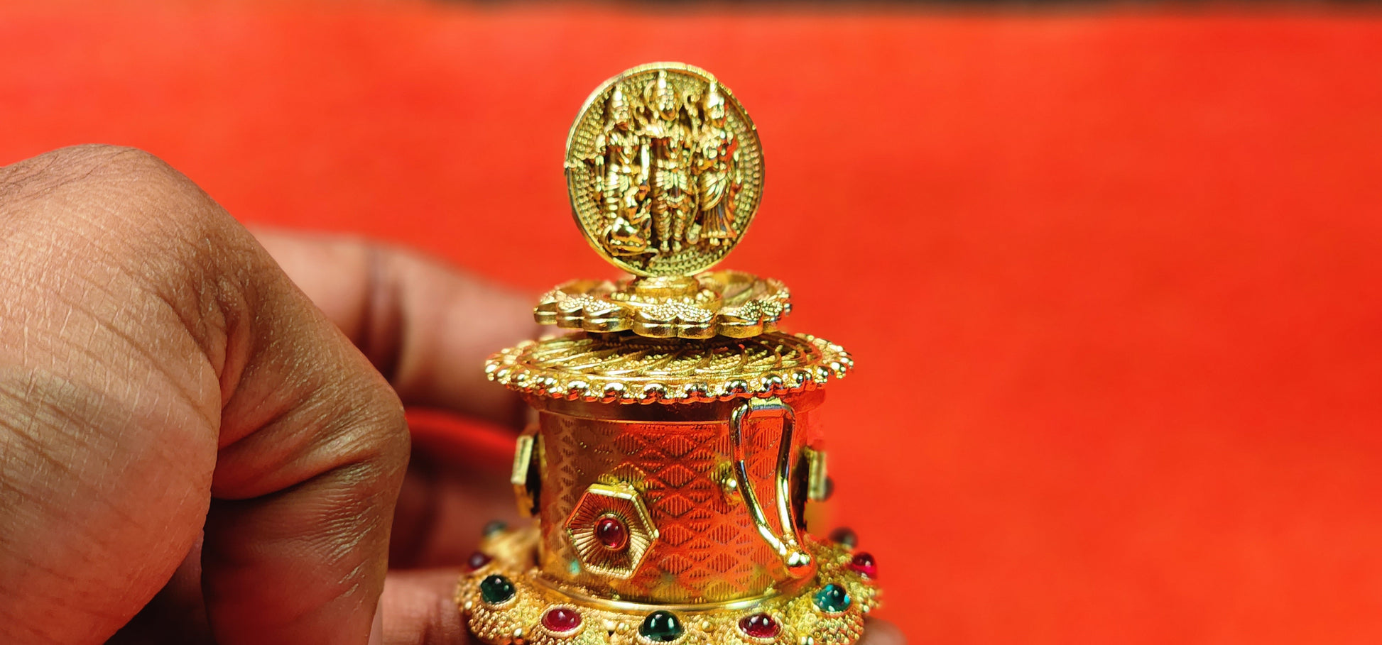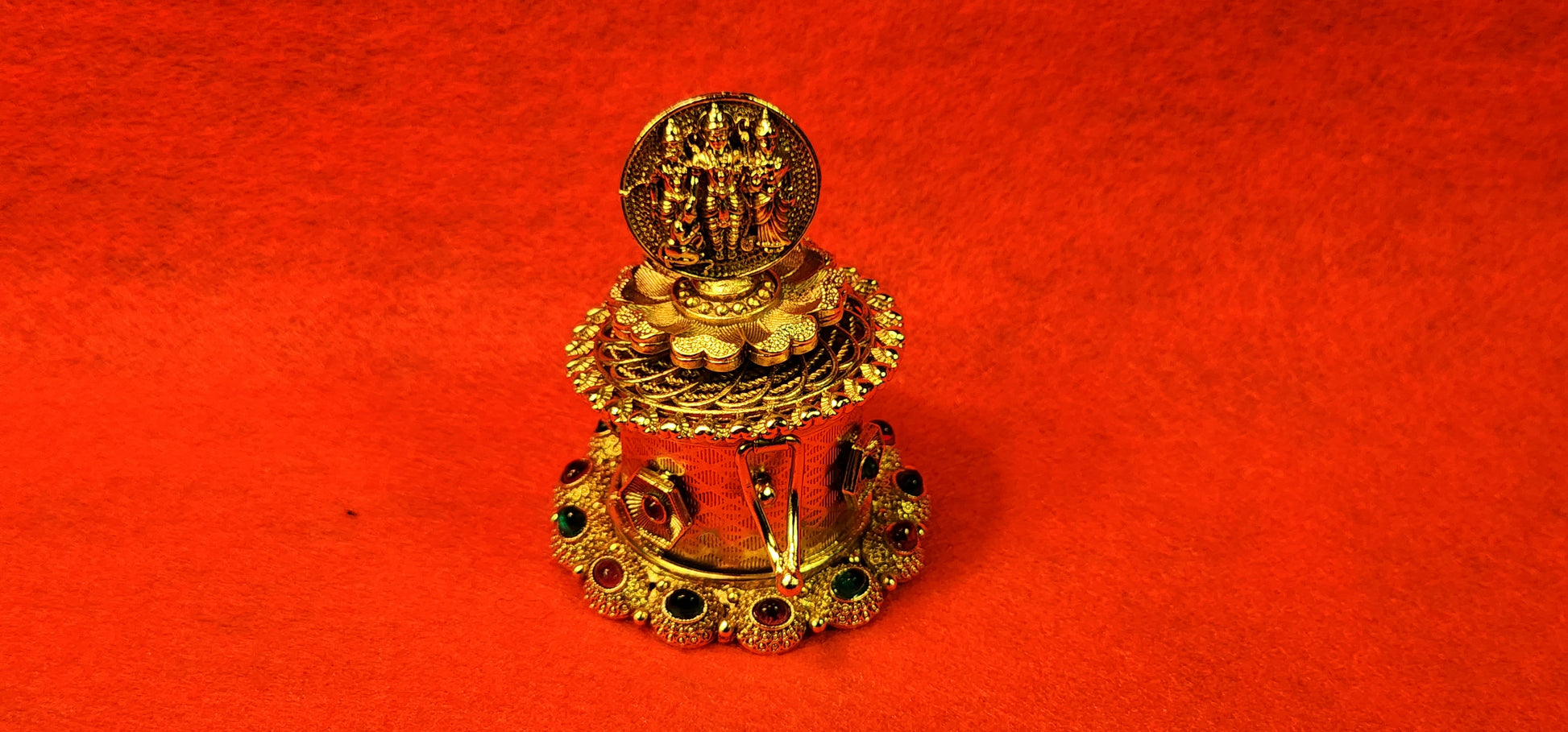 This beautiful Saffron Box Designer Style Ramar, Lakshman, Sita devi and Hanuman. It is carved with intricate details adding an elegant and authentic feel to your home. Perfect for religious and decorative purposes.