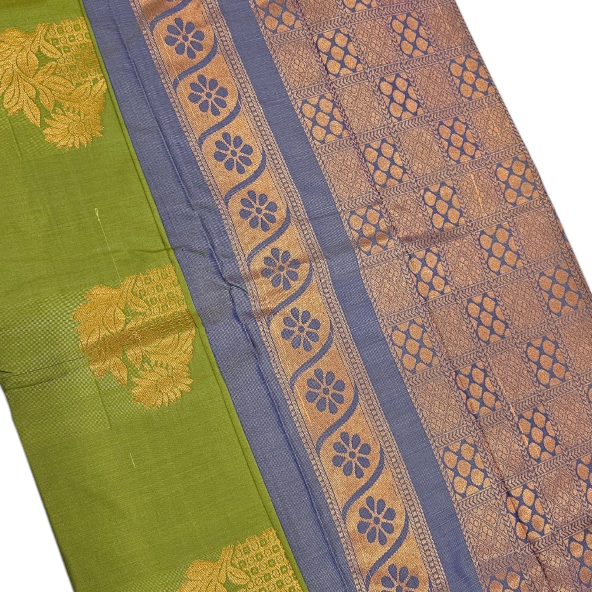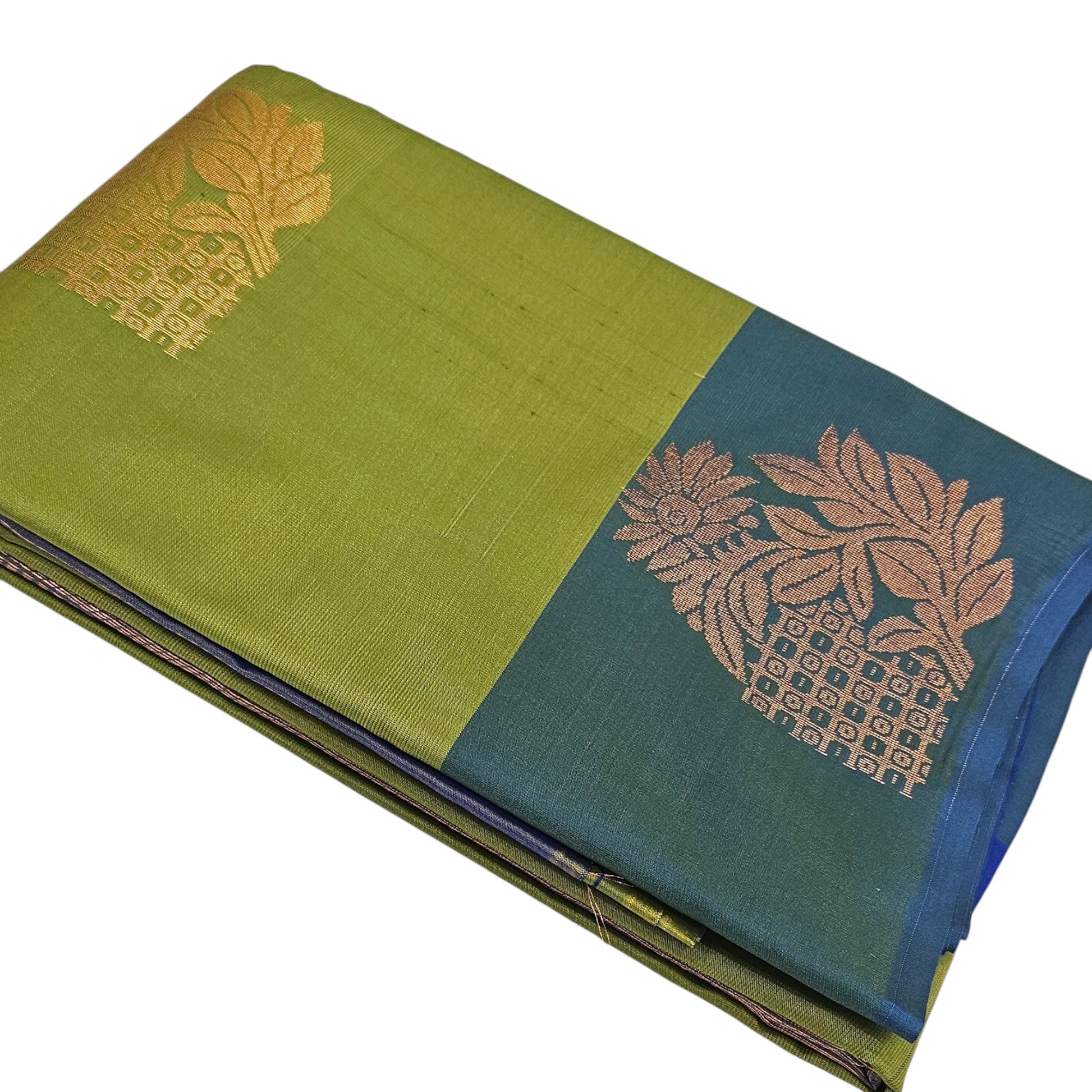 Serene Green Silk Saree with Celestial Blue Pallu