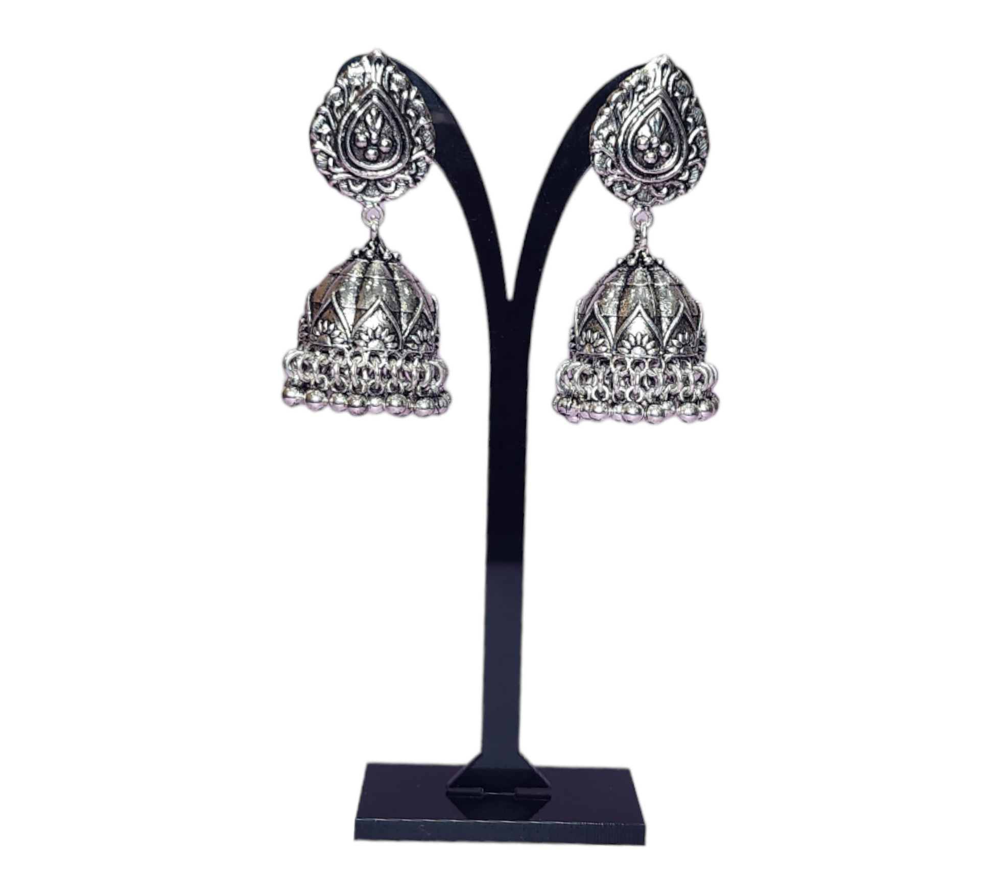 Adorn yourself with these elegant Studs Earrings made from oxidized silver in an antique style. Perfect for any special occasion or party, these stunning jimikki earrings will add the perfect finishing flourish.