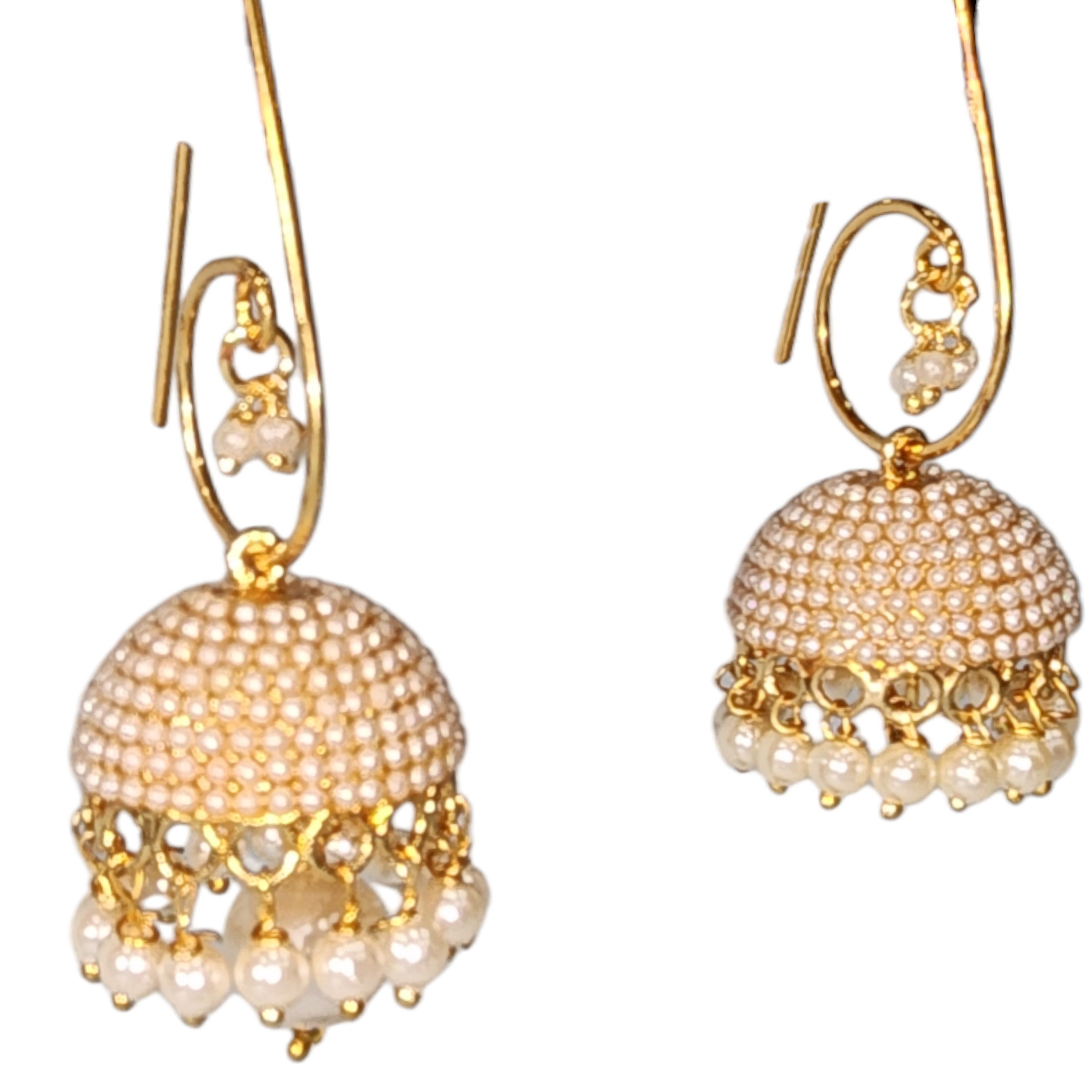 Studs Earrings Red Pearl Drop High Gold Fancy Style White Party wear Jhumka