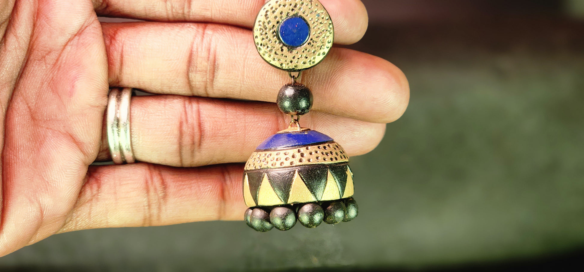 Studs Earrings Terracotta Black & Gold color Party wear Jimikki