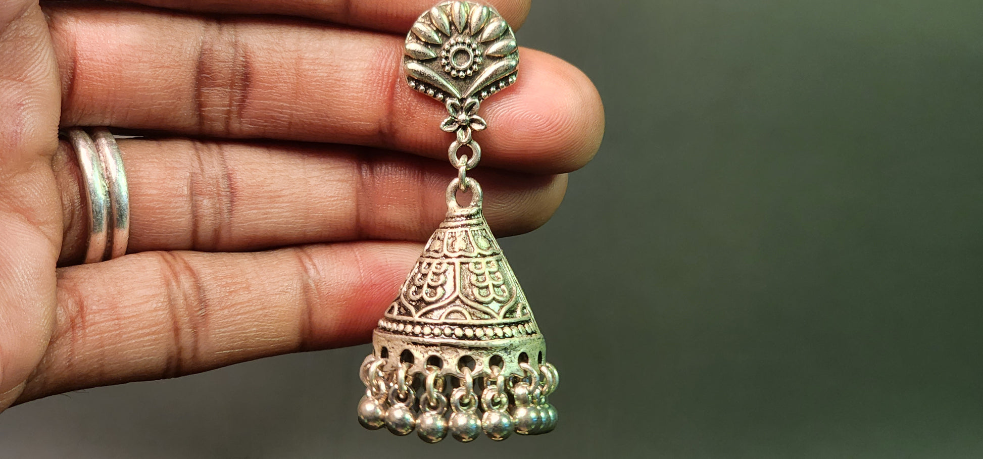 Studs Shell Style Earrings Oxidized Silver Party Wear Jimikki