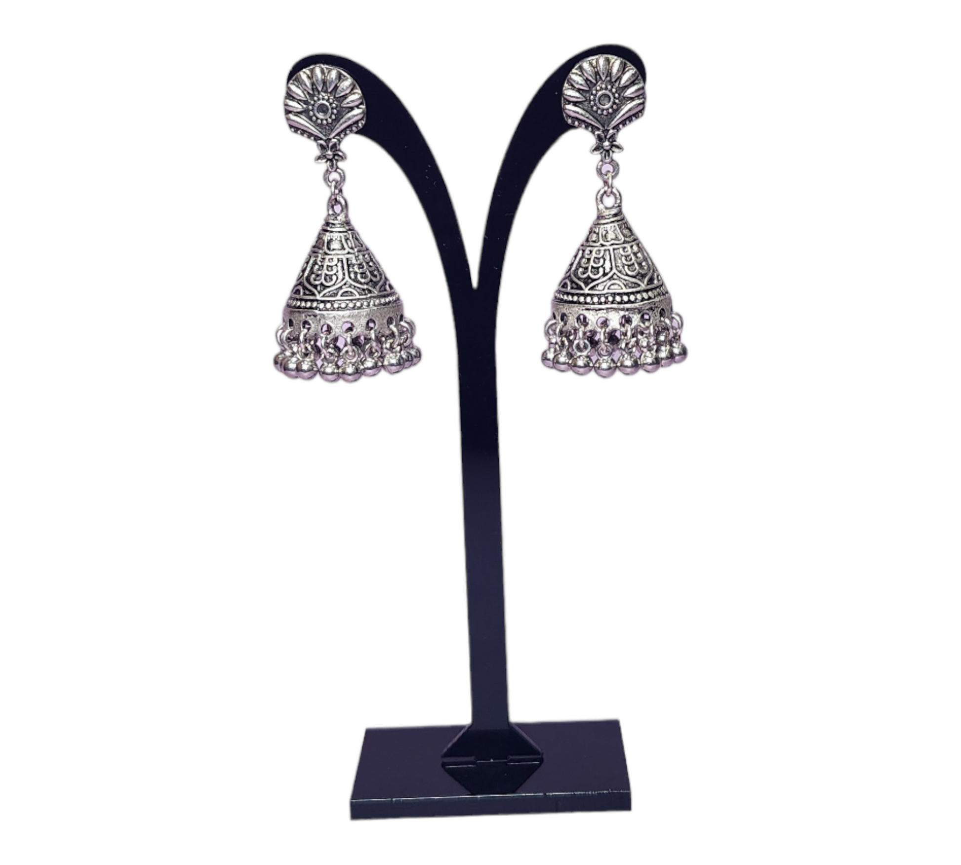 Look stylish and elegant with these Studs Shell Style Earrings Oxidized Silver Party Wear Jimikki. The unique design of these earrings make them the perfect accessory for any formal event. The oxidized silver finish gives them a luxurious look that will add a touch of opulence to any outfit.