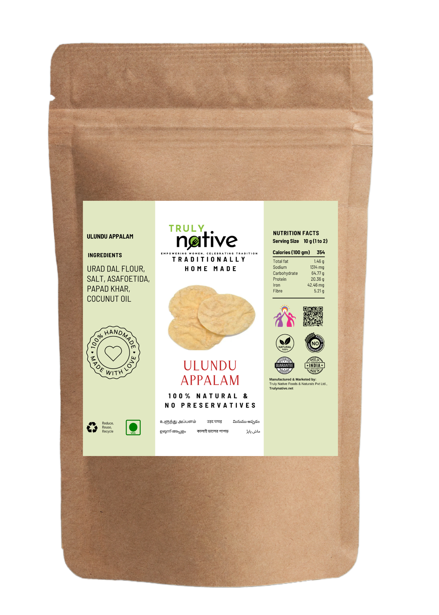 Prepared with high-quality urad dal, this appalam delivers an unmatched earthy flavor and texture. It’s a staple side dish for any traditional Indian meal.Â